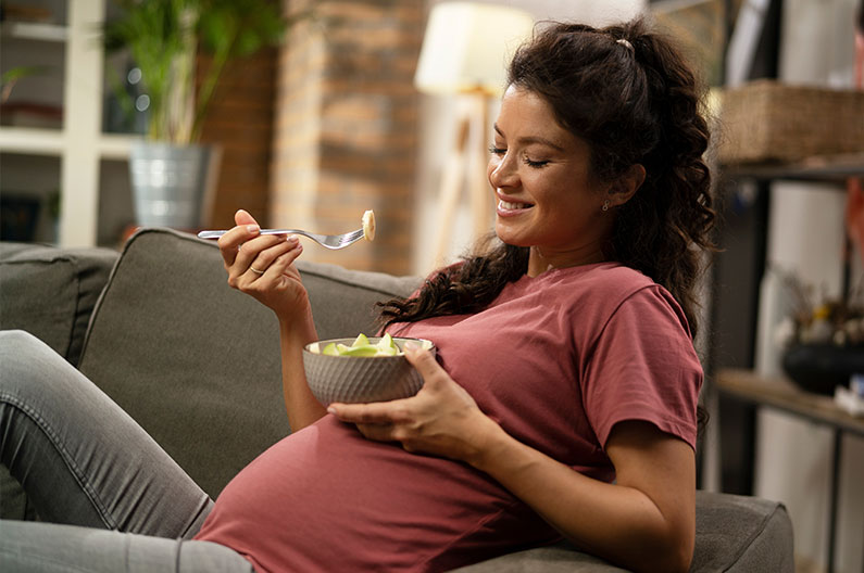Despite research showing that most women are not getting enough vitamins and minerals from their diets11, many are told to just “manage their weight”, which is not very useful information and, in some instances, just fuels anxiety and less than ideal eating habits. Others are told to unnecessarily restrict key food groups due to unfounded concerns about food intolerances. Common pregnancy-related issues like nausea, constipation, and reflux further complicate the situation. Others are concerned about food safety and unsure what foods they should avoid.